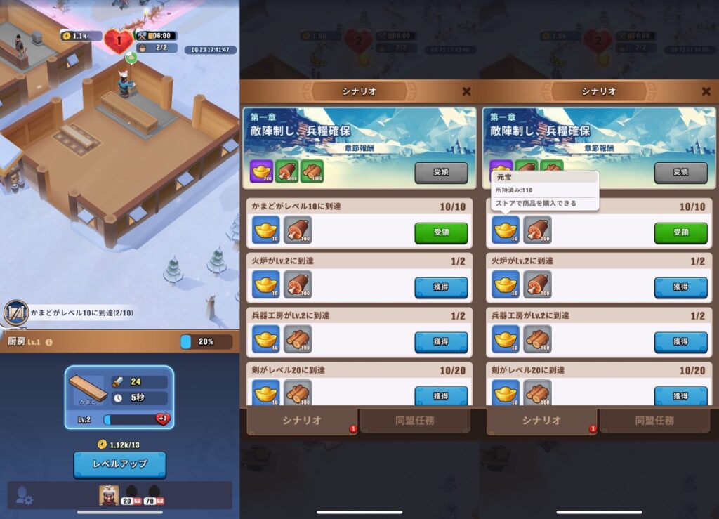 任務が完了するとストアで使える元宝や、食糧などもゲット出来ます!