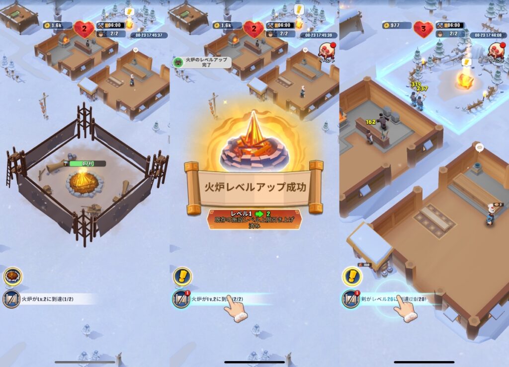 チュートリアルでは建築や建物のレベルアップなどを行います♪