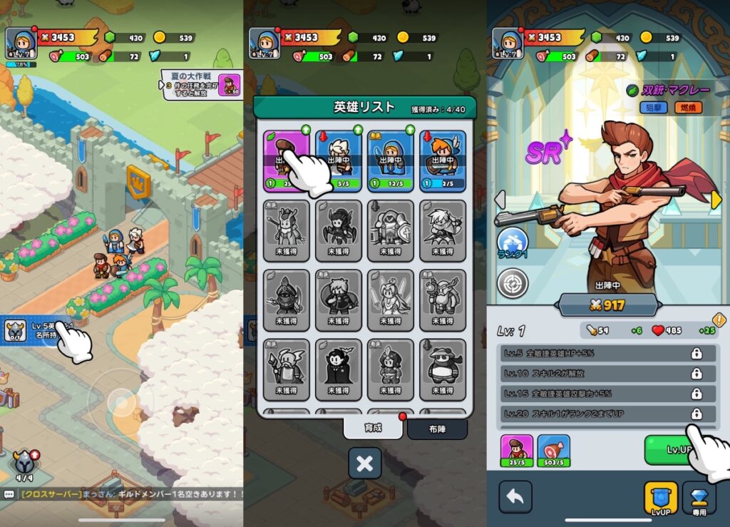 キャラ画面に行くには、画面左下の英雄リストをタップします!