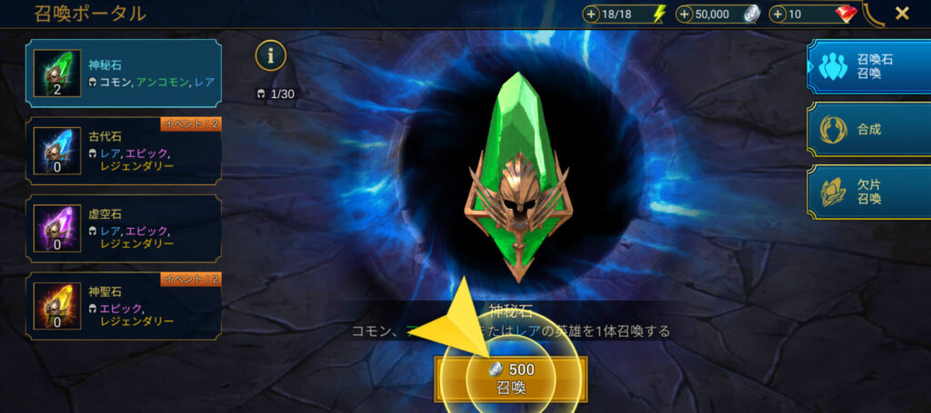 ポータルの黄色の矢印をクリックすると召喚ポータルの画面に切り替わります。