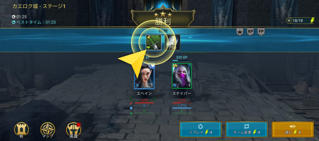 黄色の矢印マークをタップしてサクサクと進めていきましょう。