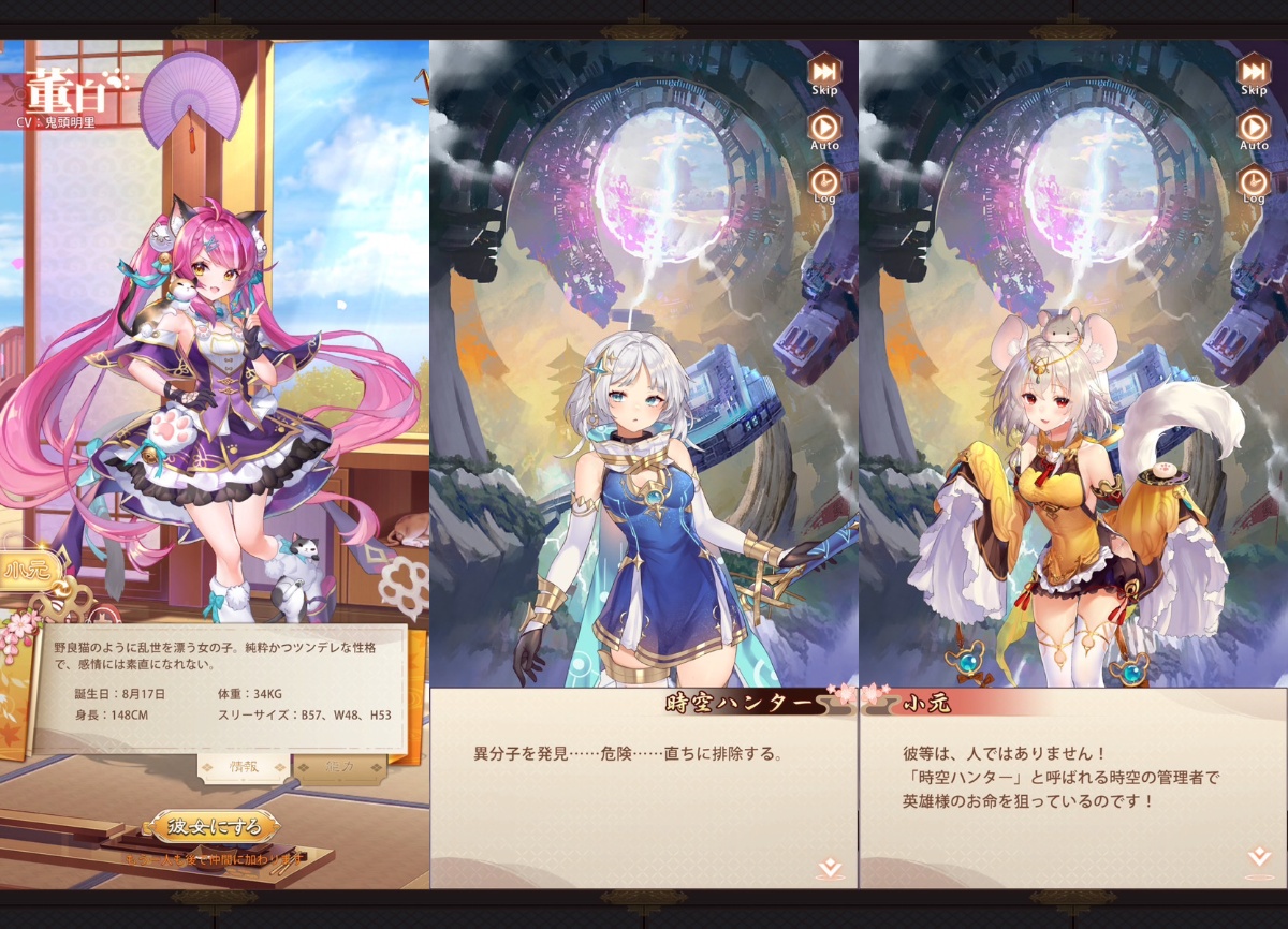 少女廻戦をダウンロードすると、キツネキャラの小元と野良猫のような女の子薫白が登場します!
