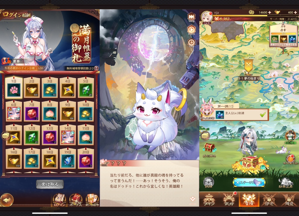 ・放置ゲームですが、意外とやることが多く1日のプレイ時間が長めな印象です。