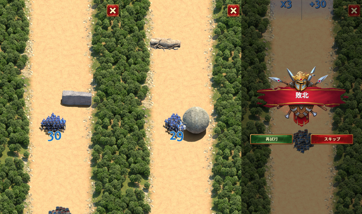 自動的に前進する兵を左右に移動させて兵を増やしながら進めていきましょう。